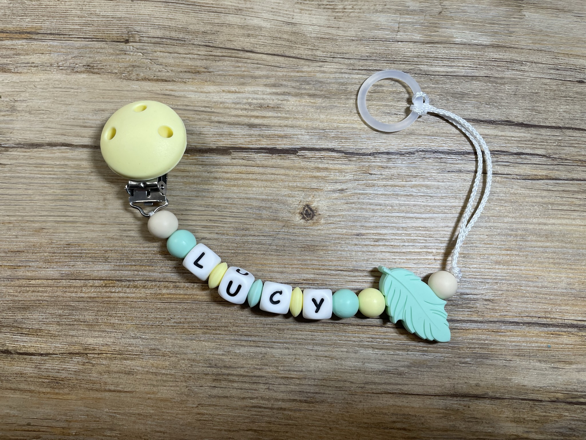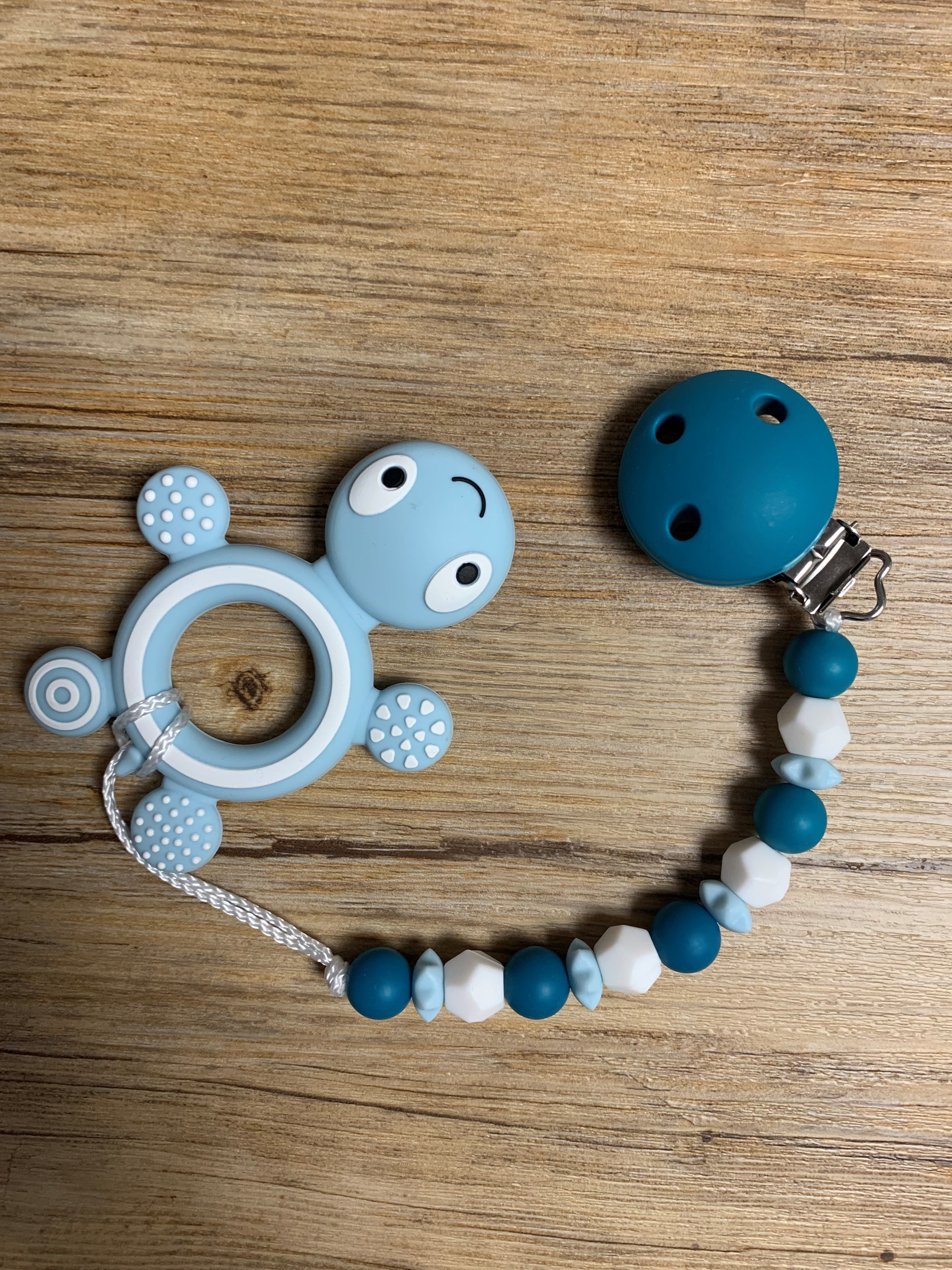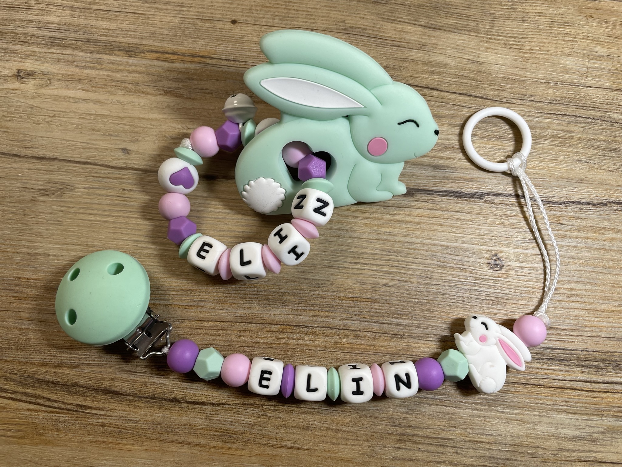 Diese lassen sich beispielsweise mit einem Nuggi oder mit einem Beisstierchen verbinden.