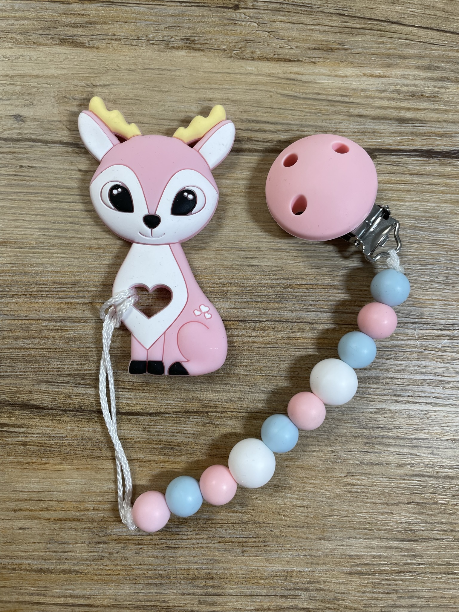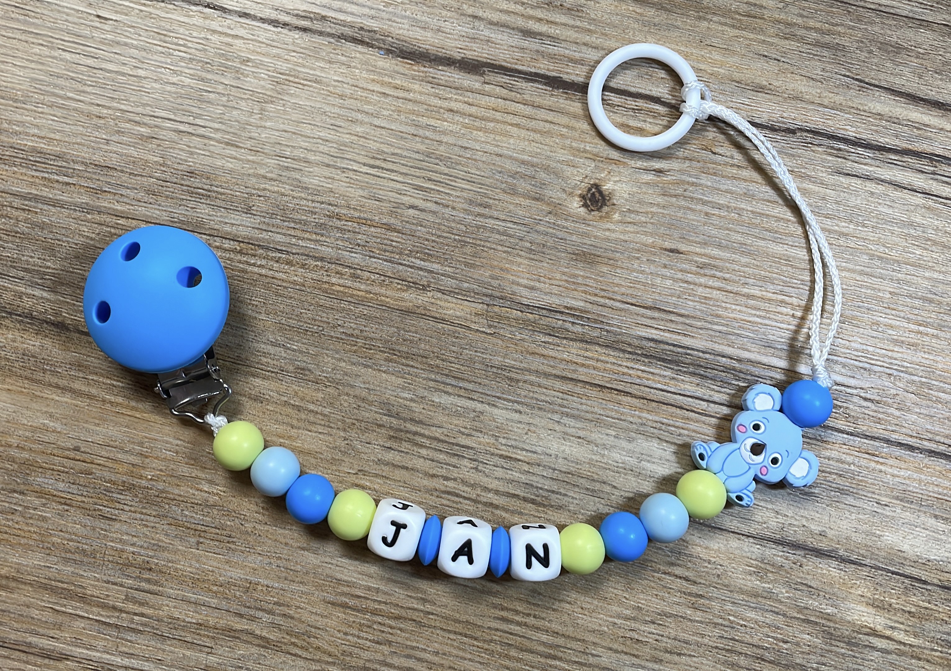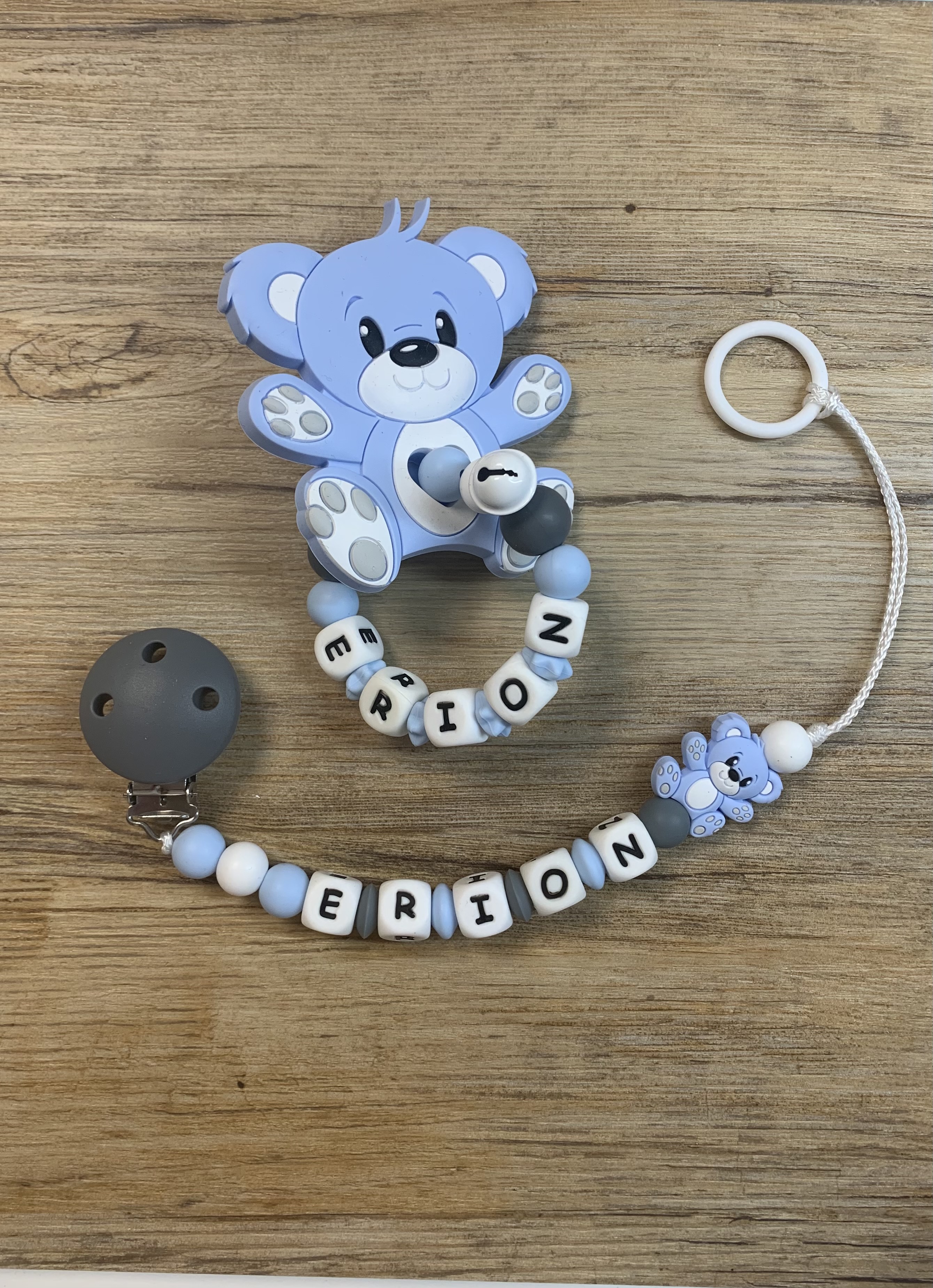 Diese lassen sich beispielsweise mit einem Nuggi oder mit einem Beisstierchen verbinden.